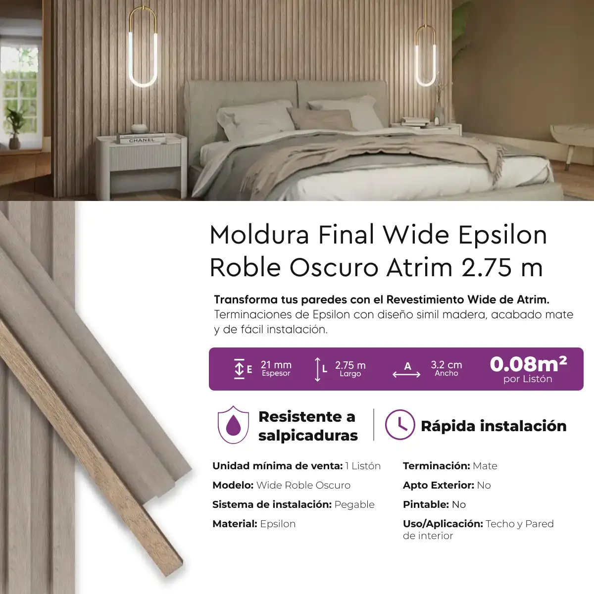 Moldura final del Revestimiento Atrim Wide Roble Oscuro de EPS