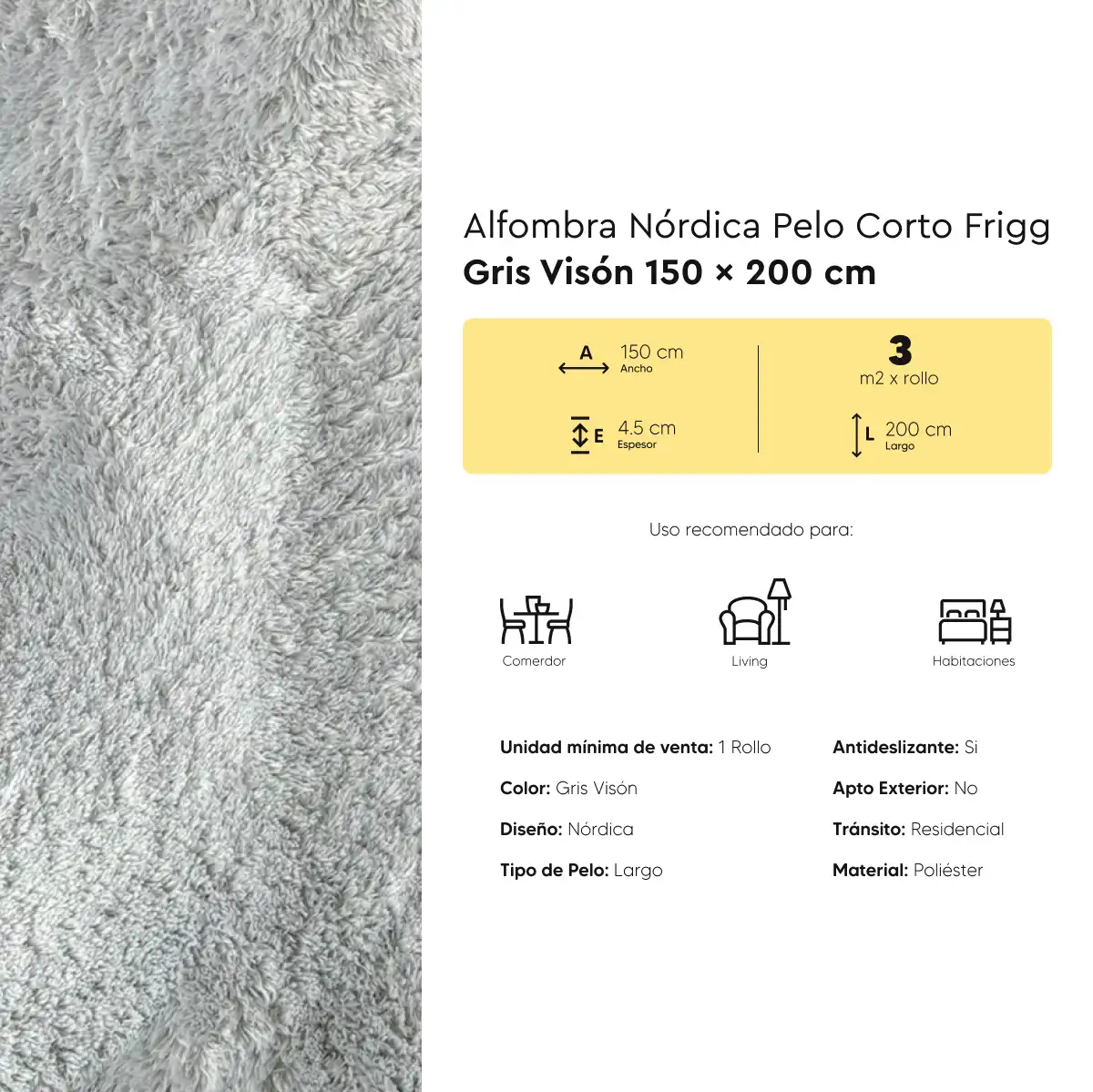 Con base antideslizante, es ideal para cuidar a toda la familia y prevenir caídas. Su pelaje suave y su buen espesor brindan calidez, aíslan el frío y amortiguan el ruido, creando un ambiente más cómodo y tranquilo. Perfecta para caminar descalzo, que los chicos jueguen o que tus mascotas descansen.