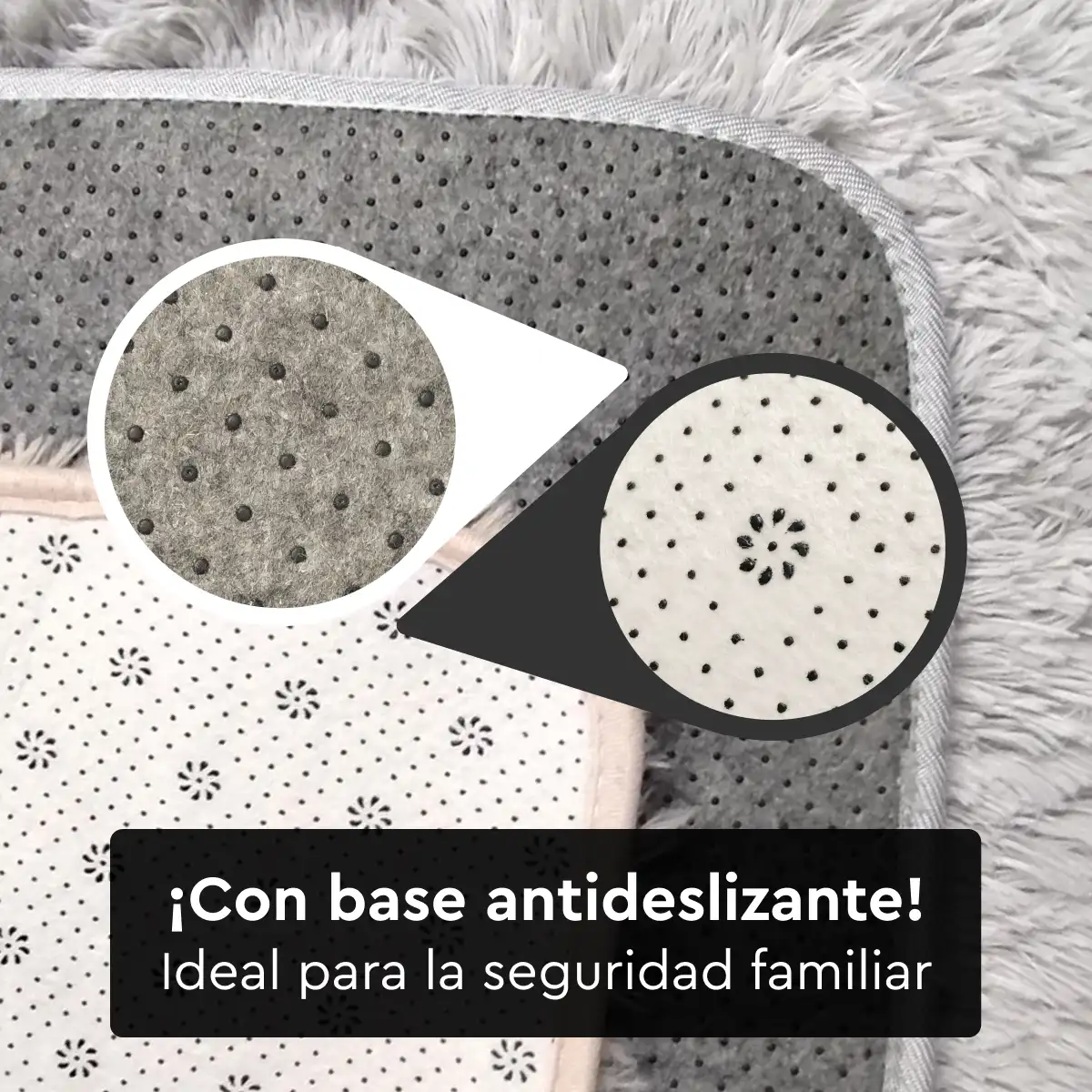 Con base antideslizante, es ideal para cuidar a toda la familia y prevenir caídas. Su pelaje suave y su buen espesor brindan calidez, aíslan el frío y amortiguan el ruido, creando un ambiente más cómodo y tranquilo. Perfecta para caminar descalzo, que los chicos jueguen o que tus mascotas descansen.