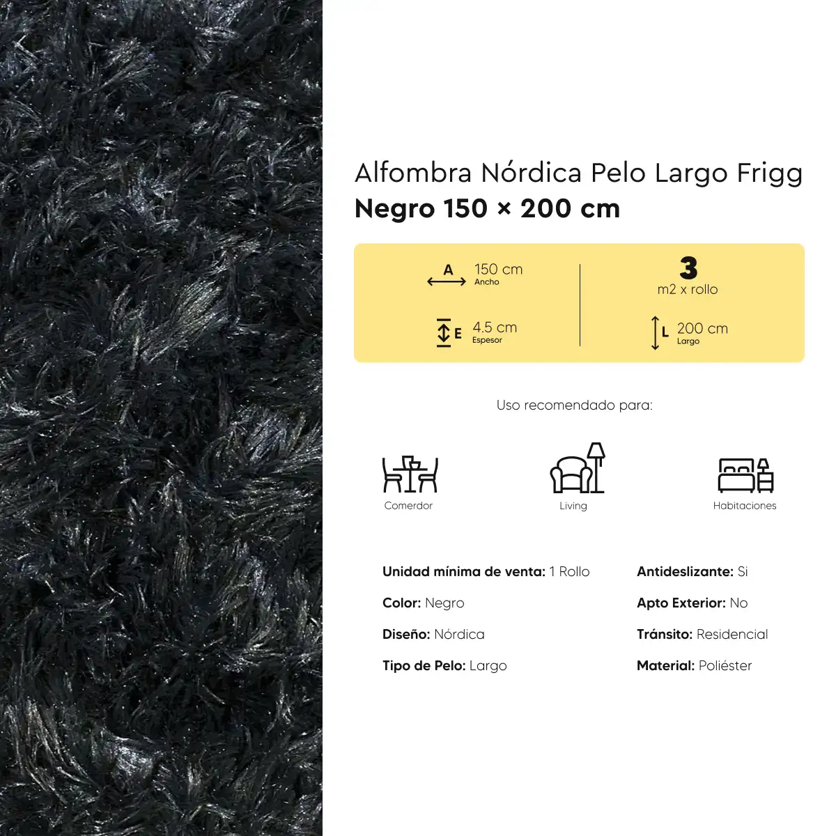 Alfombra Nórdica Pelo Largo Frigg Antideslizante Negro 150×200 cm
