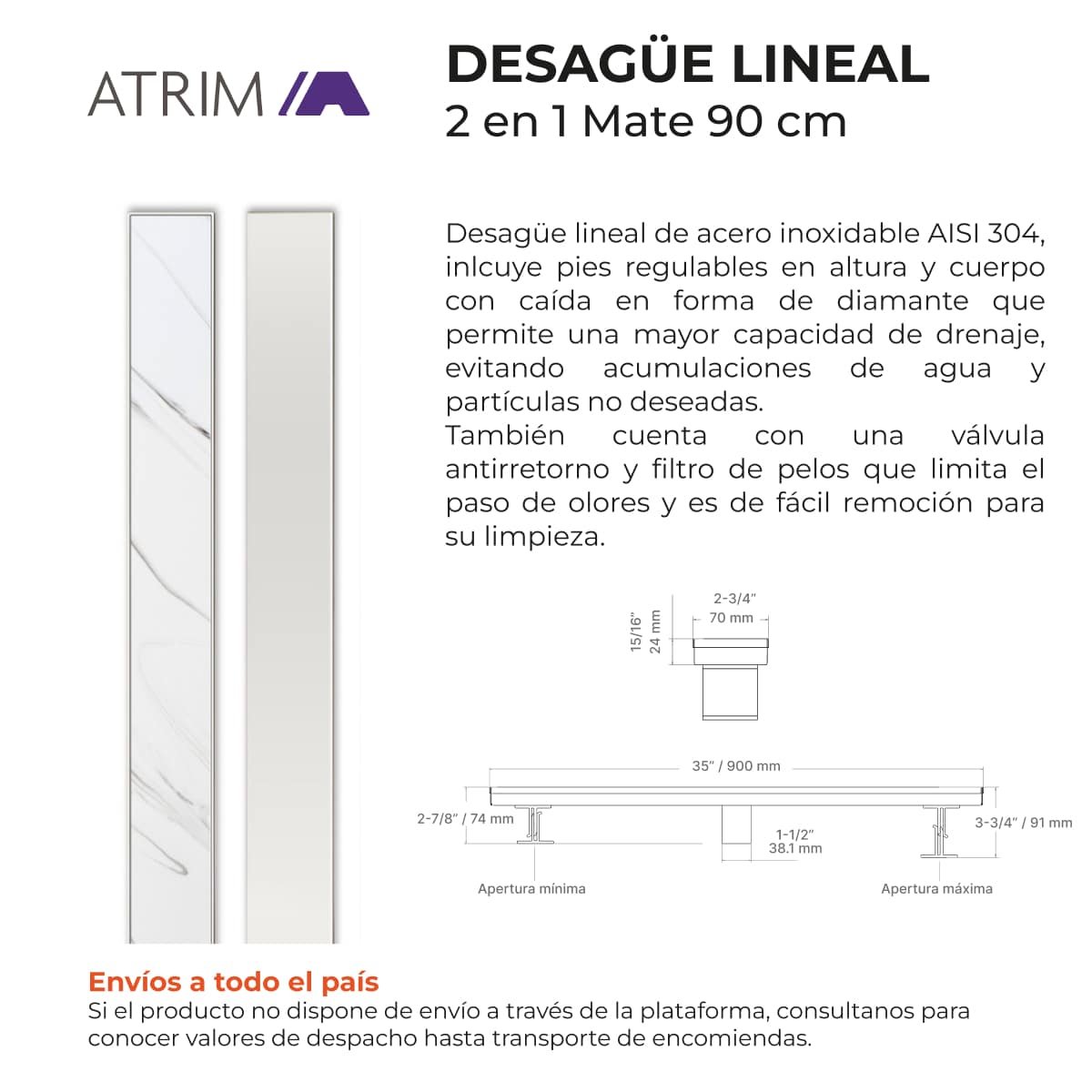 Desagüe Lineal Atrim 2 en 1 Aqua 90 cm Acero Inoxidable Mate