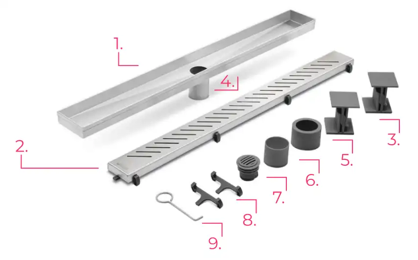- Desagüe lineal de acero inoxidable AISI 304.