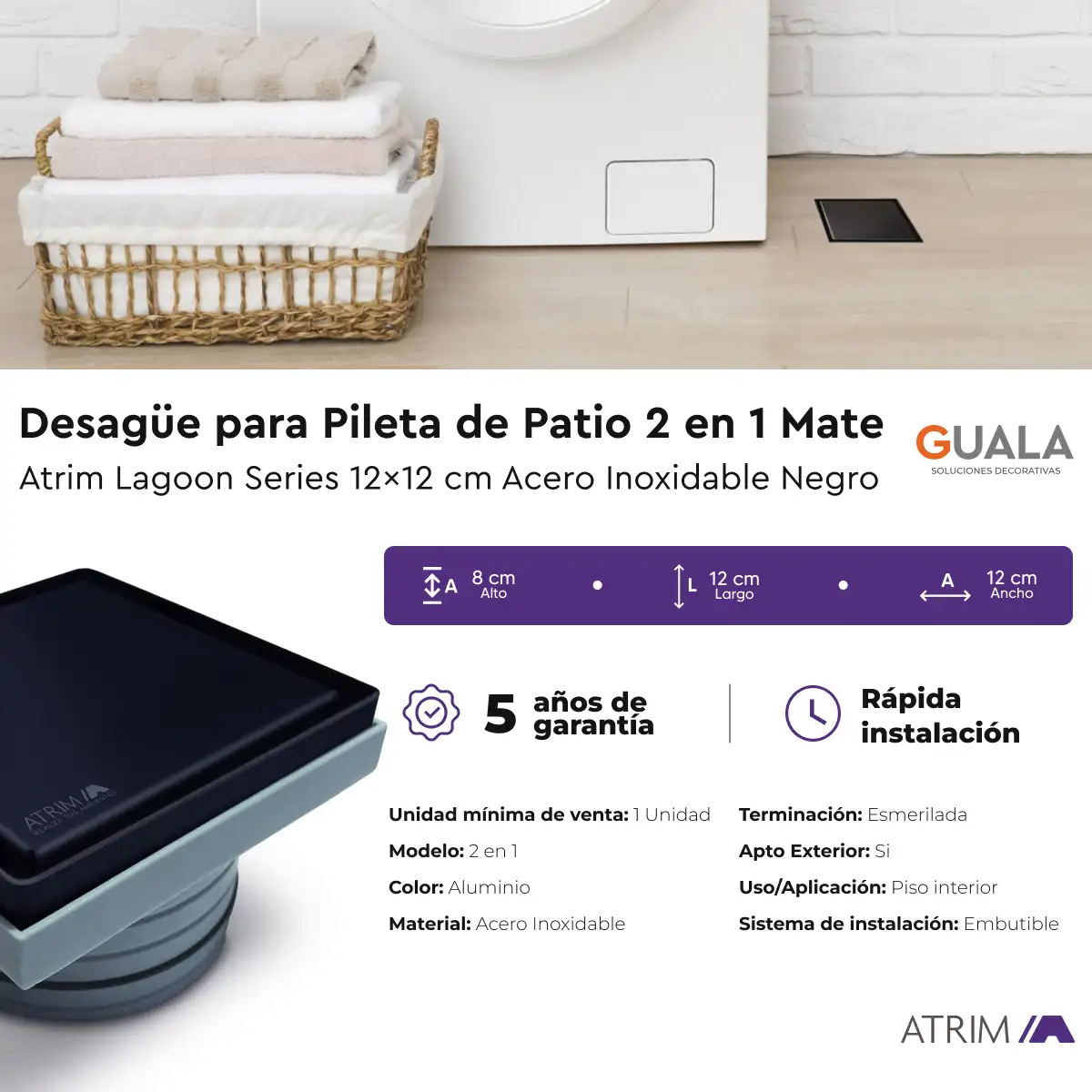 Desagüe para Pileta de Patio Atrim 2 en 1 Acero Inoxidable Negro Mate