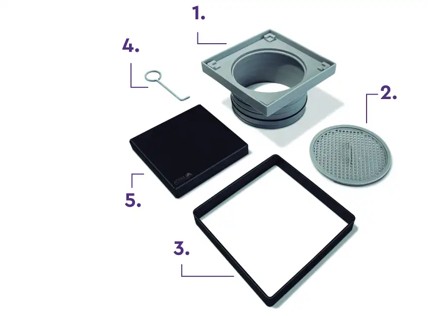 Rejilla cuadrada Atrim para pileta de patio con diseño para baño, lavadero y espacios generales