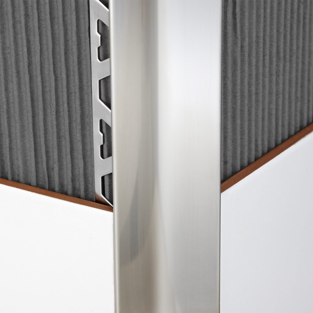 Posee gran resistencia a los golpes y protege los cantos de las esquinas expuestas a severas agresiones mecánicas. Ideal para utilizar en espacios públicos. Se colocan junto al revestimiento formando una esquina exterior simétrica.