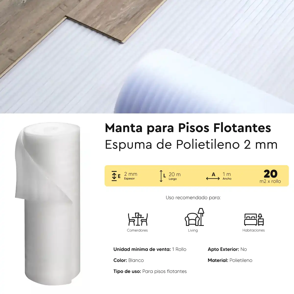 Manta de Polietileno de 2 mm para Pisos Flotantes, rollo de 20m²