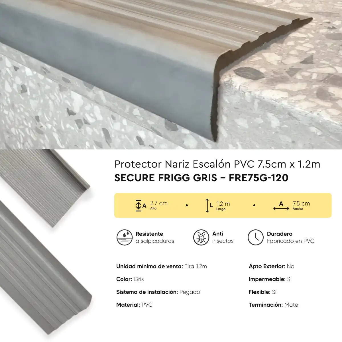 Protector Nariz Escalón Frigg Secure 7.5 cm Perfil de PVC Gris 1.2 m