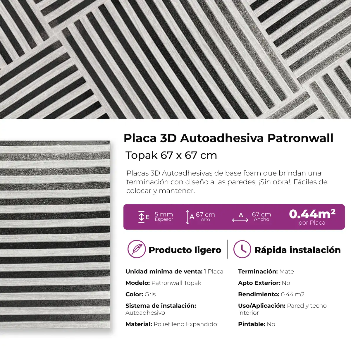 Placa autoadhesiva 3D de fácil colocación