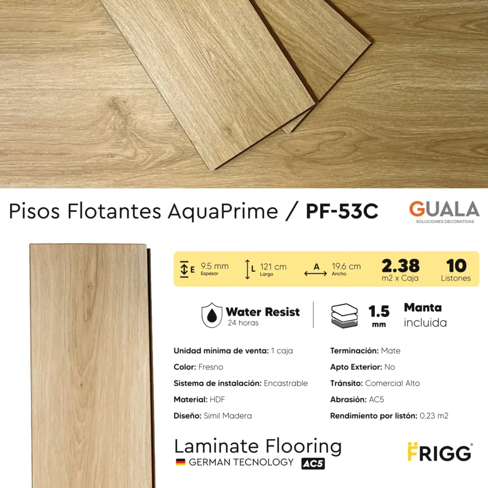 Piso Flotante Frigg AquaPrime Fresno 9.5 mm HDF Simil Madera Alto Tránsito 2.38 m² Caja
