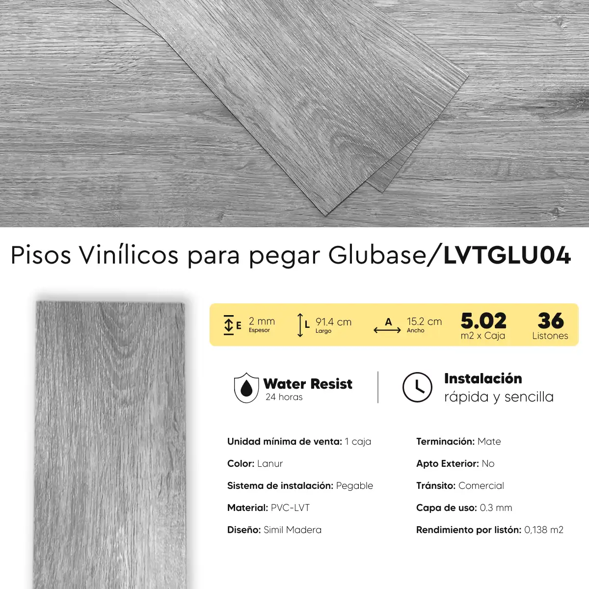 Piso Vinílico Pegable Glubase LVT - Tránsito Comercial