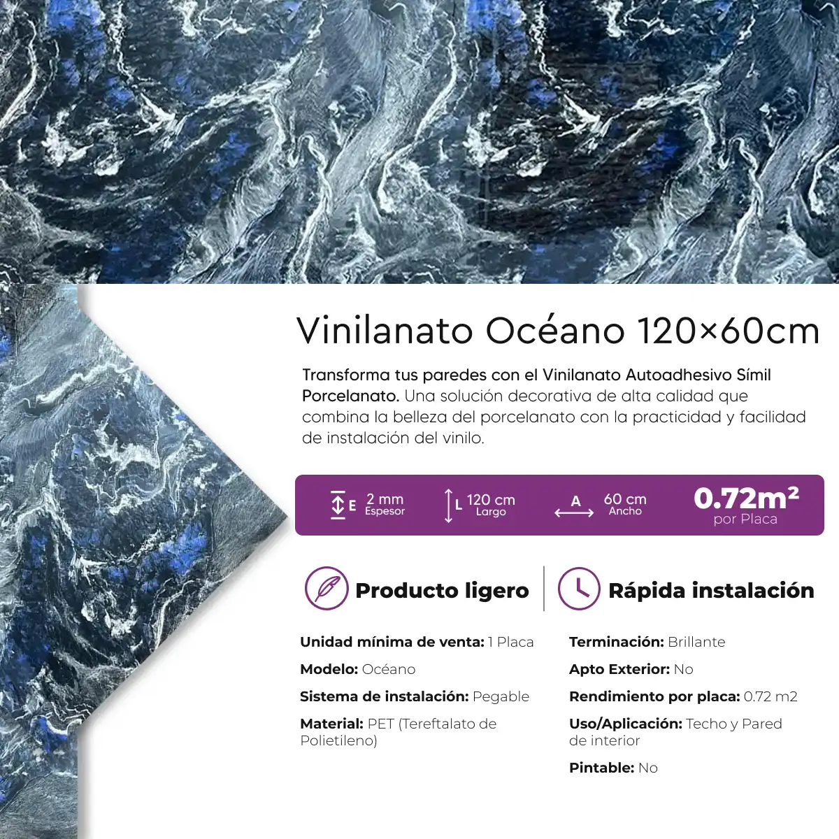 Vinilanato Decorativo Autoadhesivo 60×120 Placa de Mármol Océano