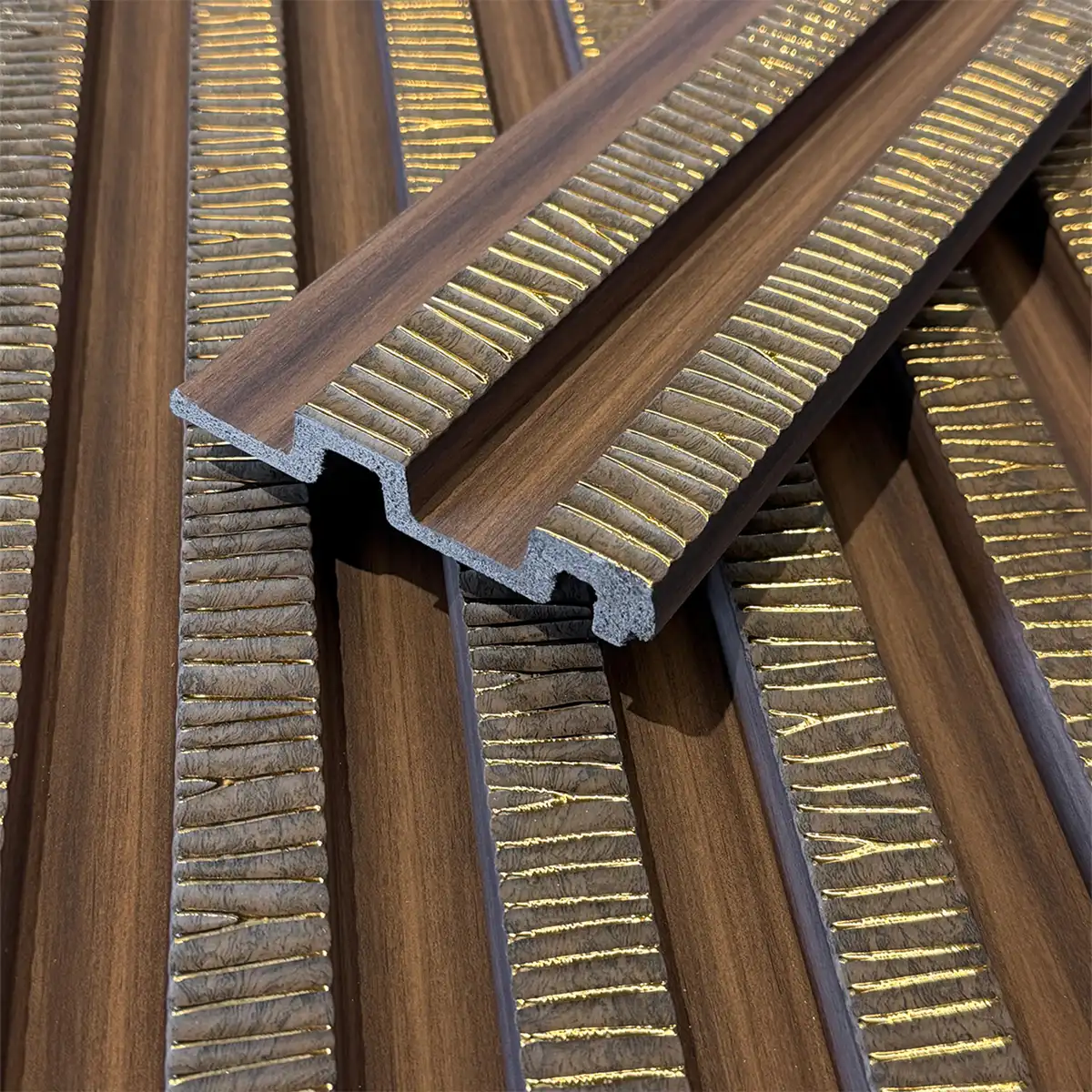 Revestimiento Wall Panel Tulum acanalado para interiores. Fabricados en EPS, revestidos con una lámina en tonos símil madera.