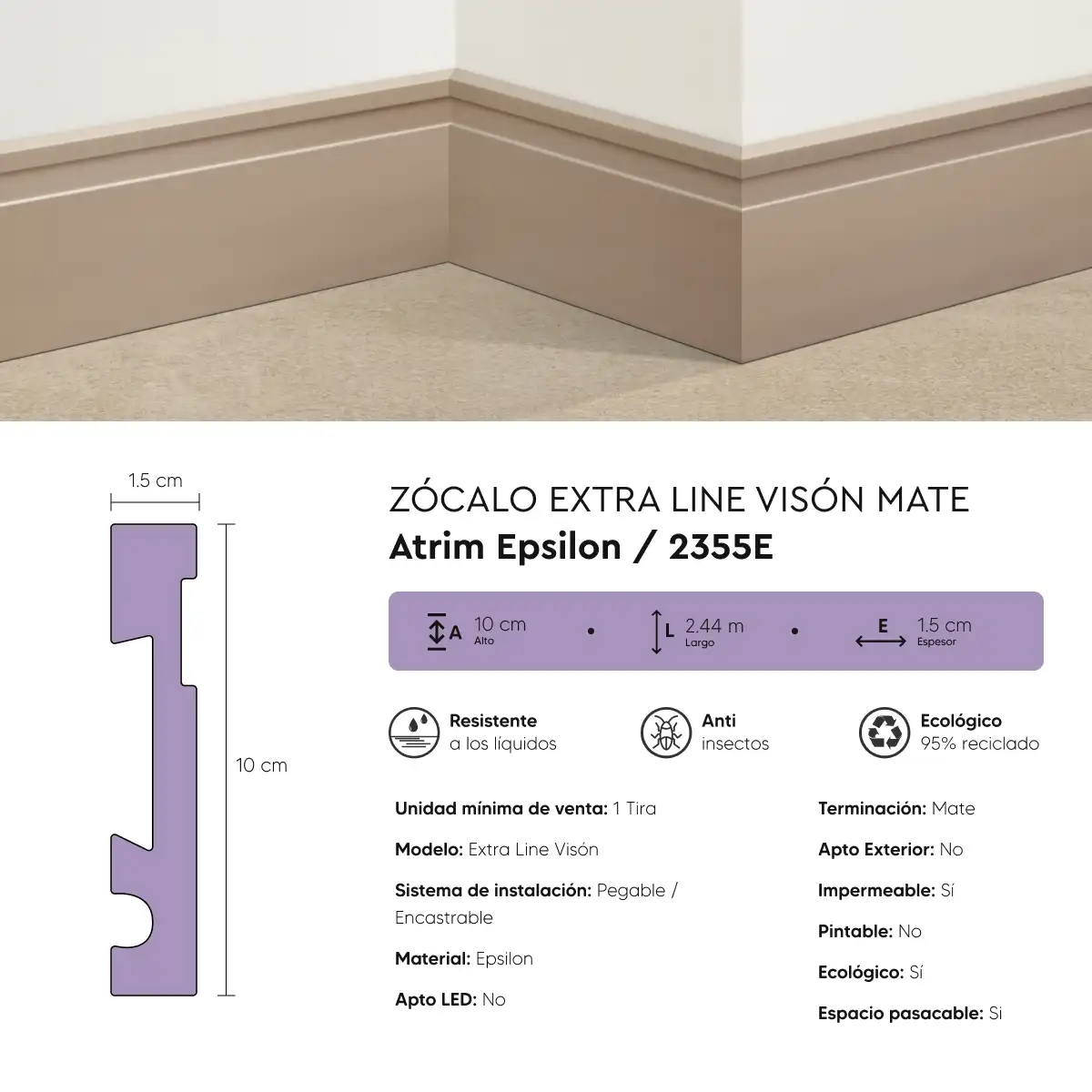 Zócalo Atrim Epsilon Extra Line 10 cm Visón Mate 2.44 m