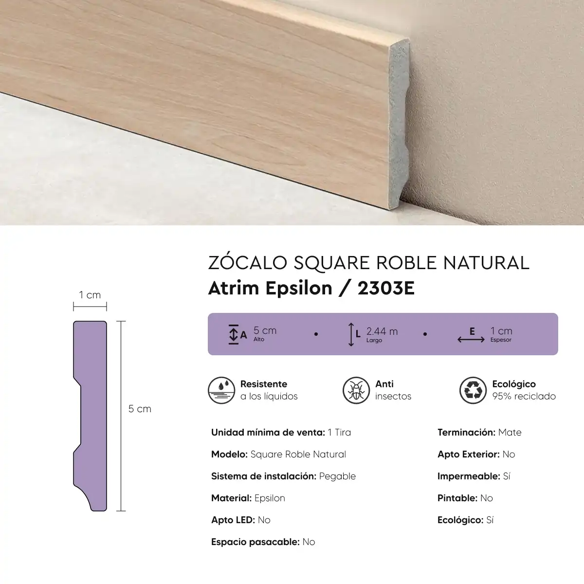 Zócalo Contramarco Atrim Epsilon Square 5 cm Roble Natural 2.44 m