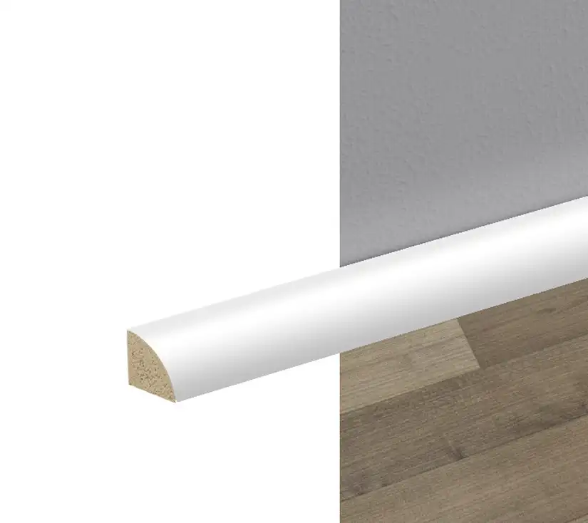 Zócalo Cuarta Caña Blanca Pintable de Epsilon de Atrim de 1.5 cm de altura, de diseño minimalista, ideal para personalizar y proteger el ángulo formado entre piso y pared, evitando que esa unión quede expuesta a la fricción.