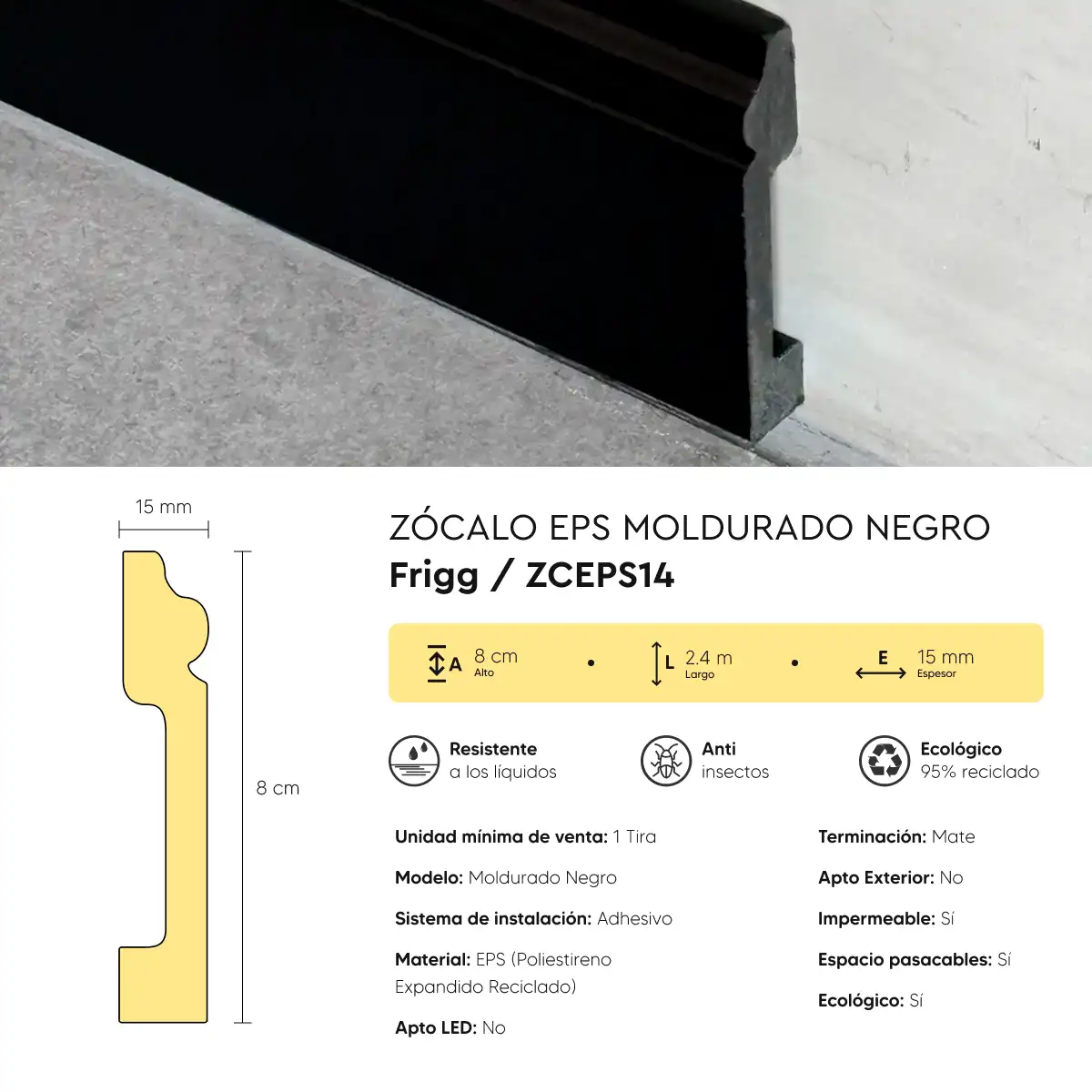 Zócalo Frigg Moldurado Nergo EPS Antihumedad 8 cm