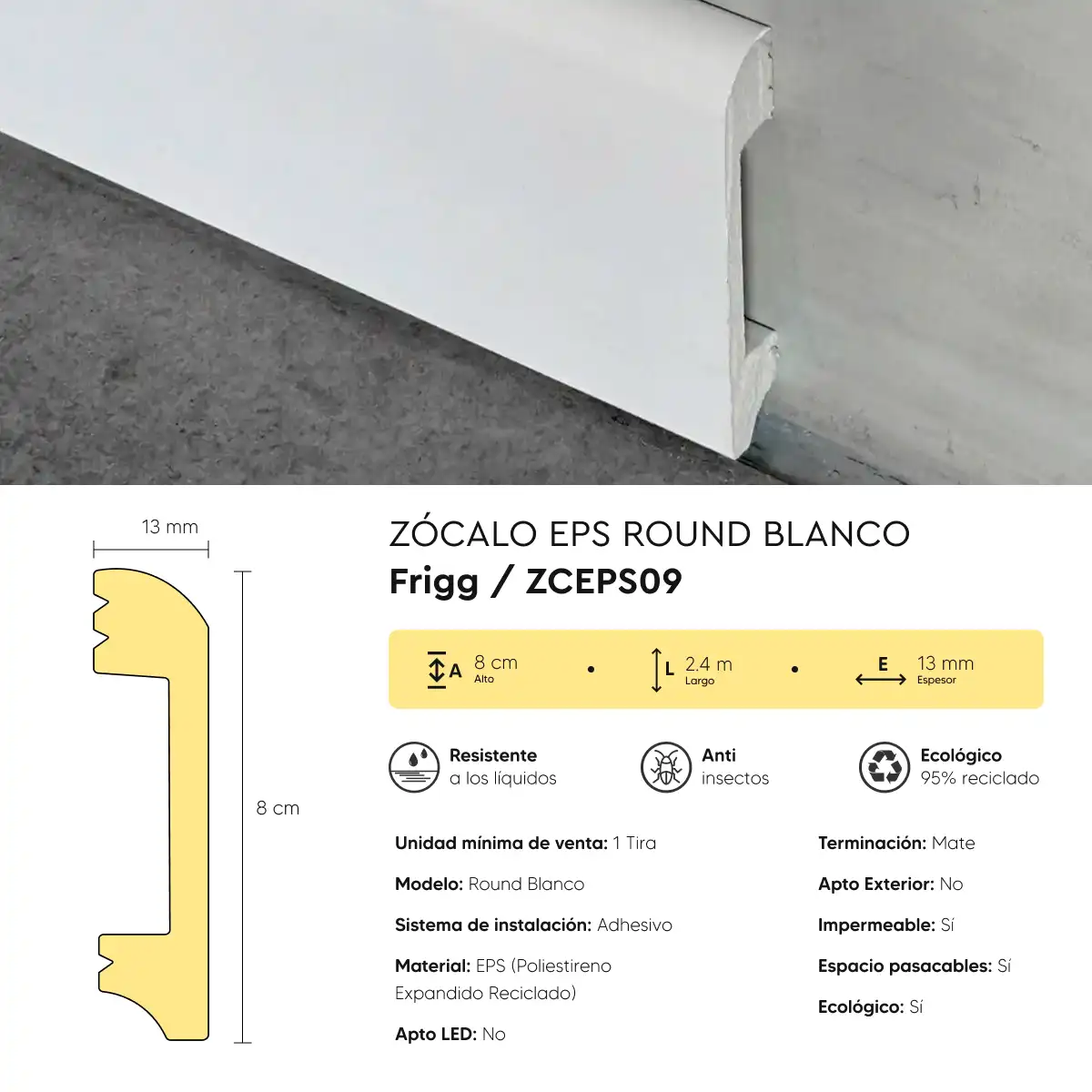 Zócalo Frigg Round Blanco EPS Antihumedad 8 cm