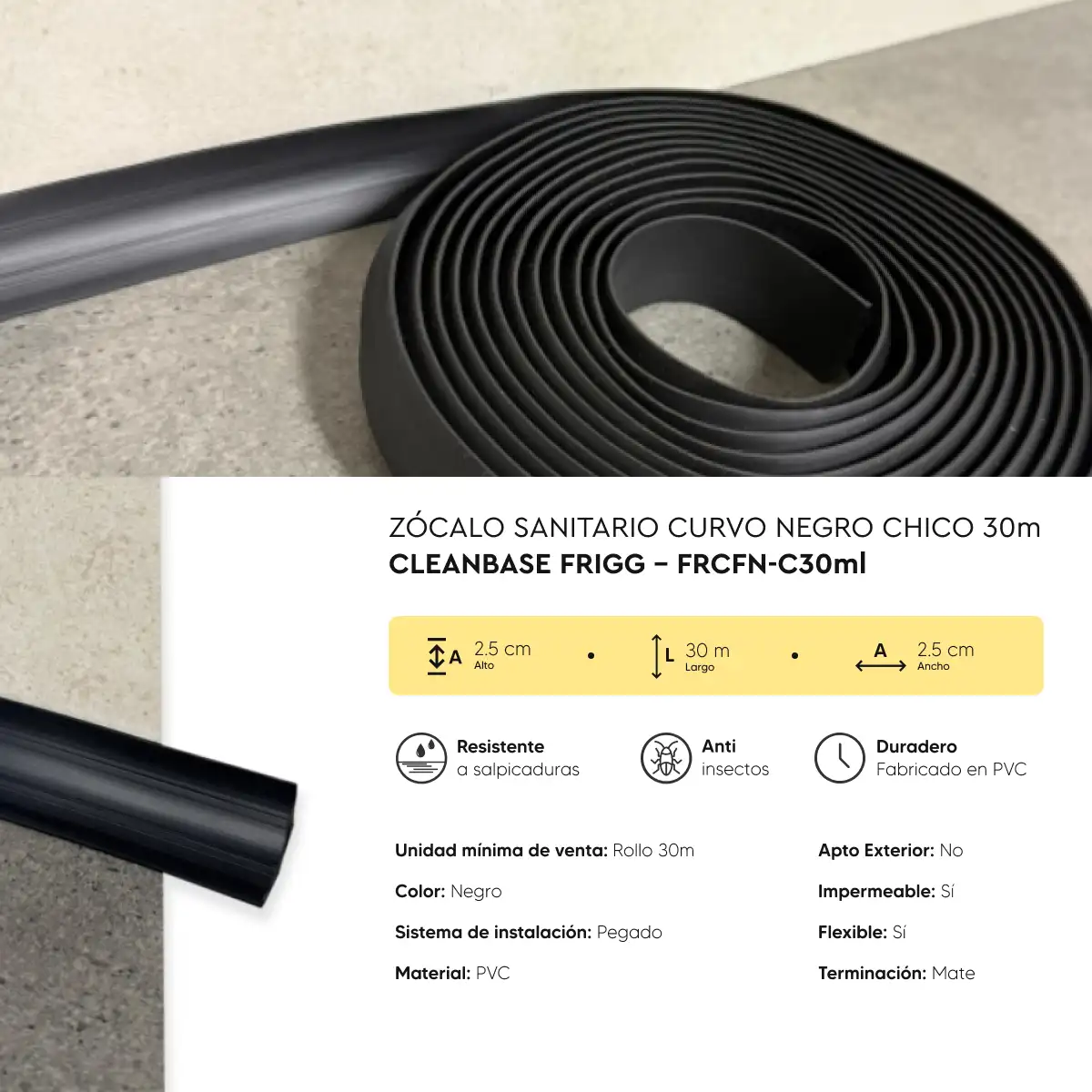 Zócalo Sanitario Curvo Negro Chico CleanBase Frigg 2.5 cm 30m