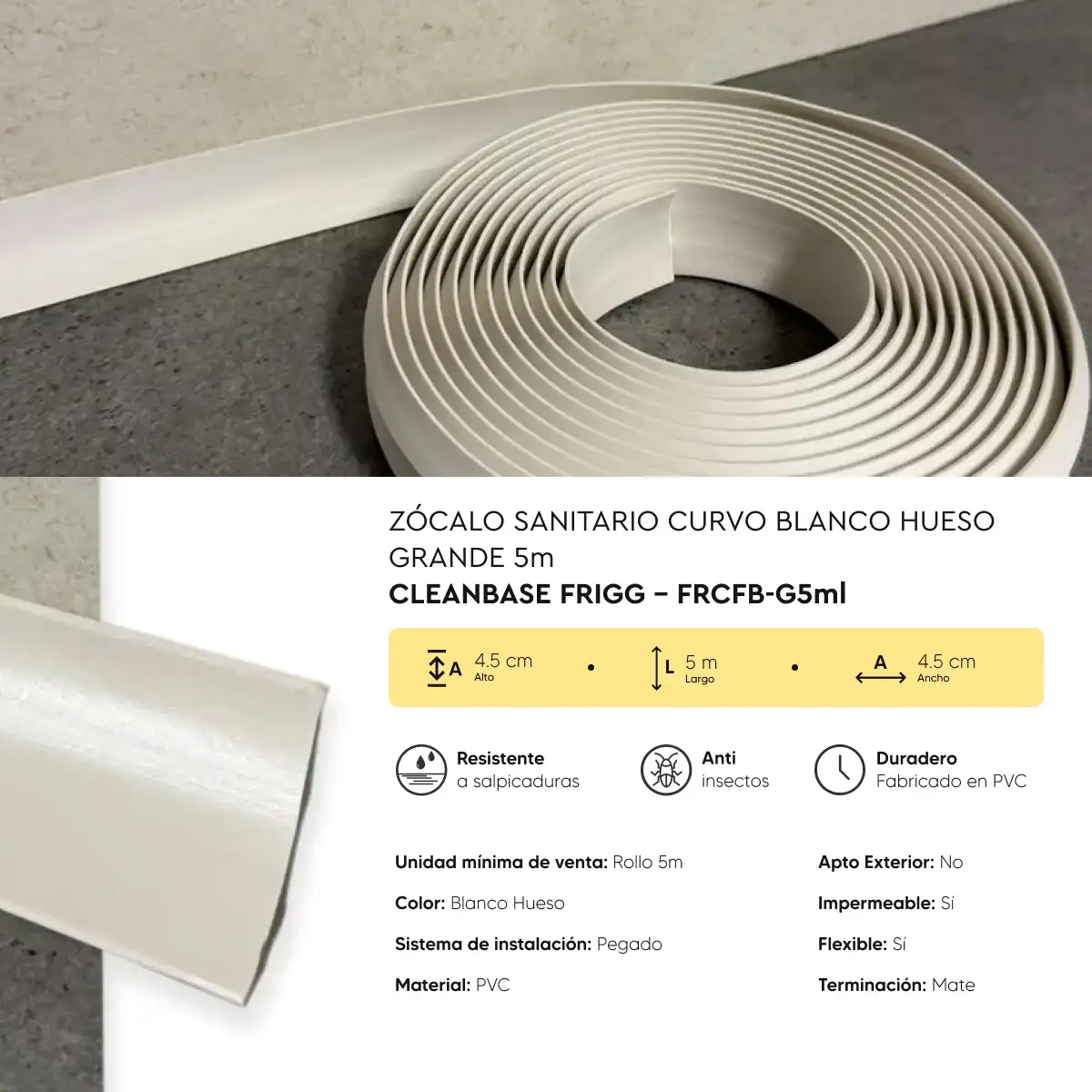 Zócalo Sanitario Curvo Blanco Hueso Grande CleanBase Frigg 4.5 cm 5m